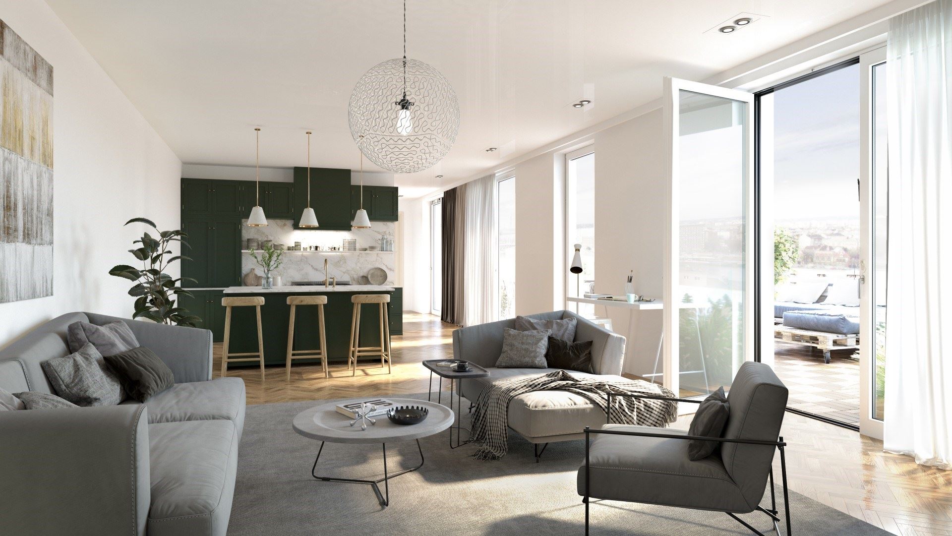 A lakások mérete a garzontól a háromszobásig terjed, melyek tervezésénél a napgazdag tájolást részesítettük előnyben. Az épület különlegessége, hogy minden egyes lakáshoz balkonokat és loggiákat terveztünk, valamint az első és kilencedik emeleten tetőkertet alakítunk ki, amely minden lakó számára hozzáférhető lesz.